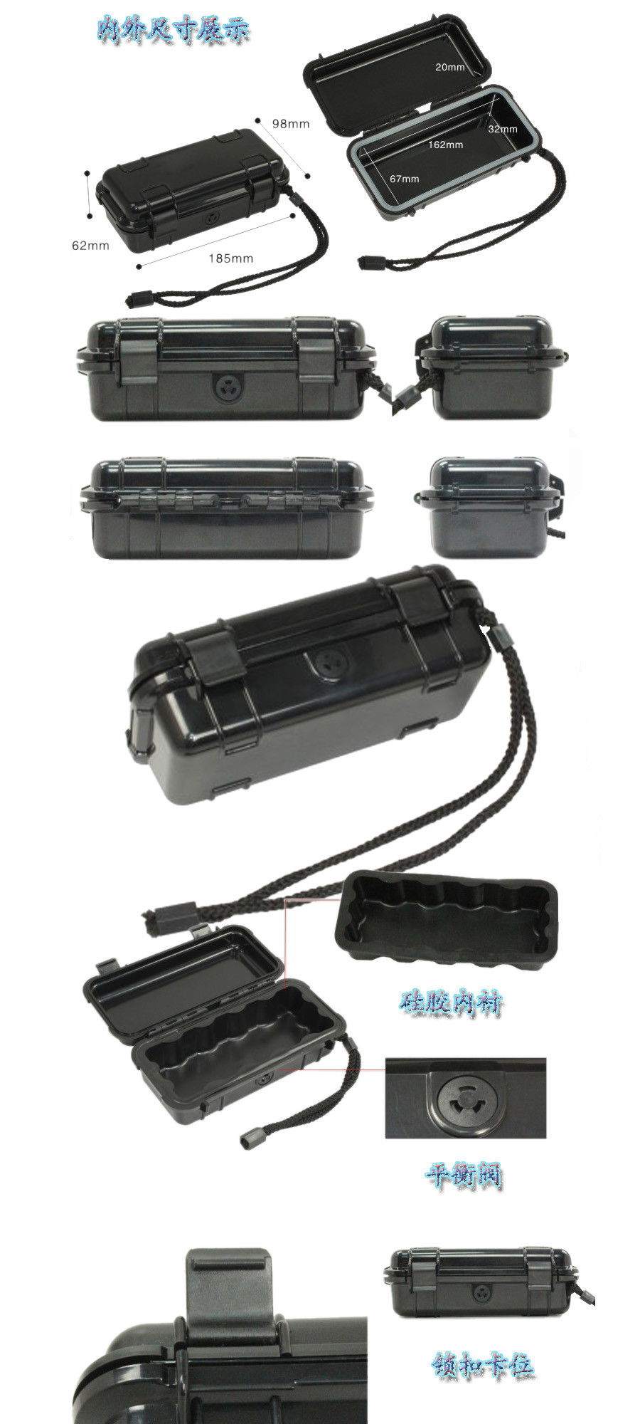 簡介:廣泛用于傳媒、公安、消防、軍隊(duì)、航空、戶外攝影、野外考察、科學(xué)探測等眾多領(lǐng)域的高端儀器、儀表。具有高強(qiáng)度、高抗壓沖擊、防潮、絕對密封、防塵、防水等特點(diǎn)。
